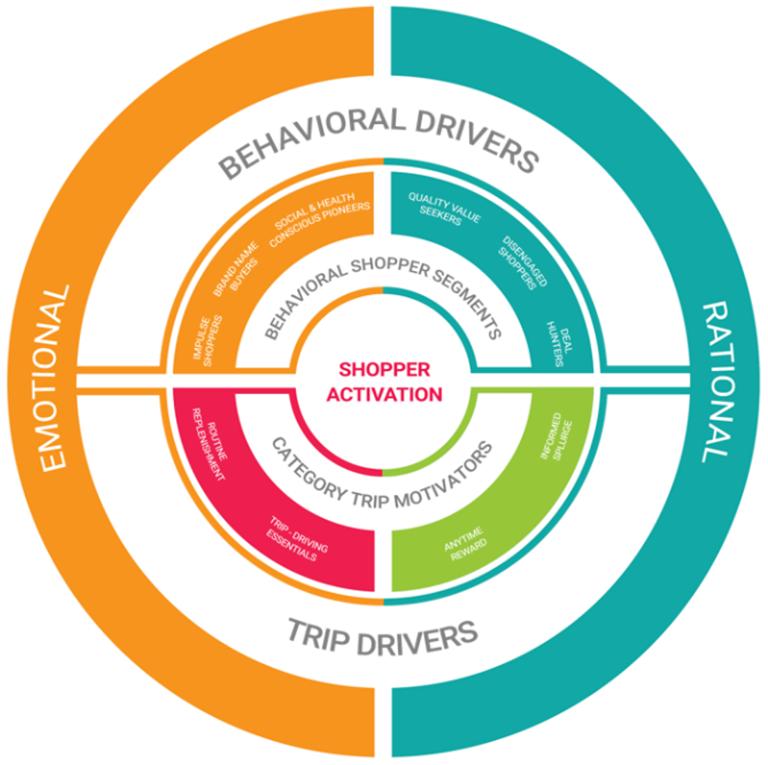 A framework, quantifying years of shopper theory, that helps you better target shopper and trip opportunities. A wholistic behavioral perspective built on 30,000 shopping trips, taking emotional and rational drivers into consideration.